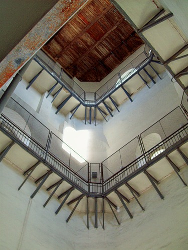 Чтобы проникнуть внутрь колокольни, нужно приобрести в кассе билет на осмотр. После этого охранник вас пропустит в тайную дверь, находящуюся напротив ларька с сувенирами, и вы начнете восхождение на вершину, минуя винтовые и прямые лесенки, протискиваясь в узкие проходы.